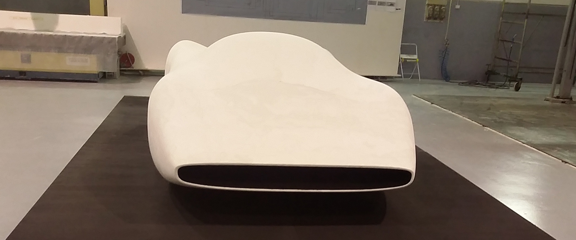 It's not a car, but a temporarily realisation of our ongoing research activities. For the exhibition 'Le Labo des Héritiers' at the Le Grand Hornu art museum in Mons-Belgium, we used the context of the museum as an opportunity to transform some experiments we have been working on into sculpture.