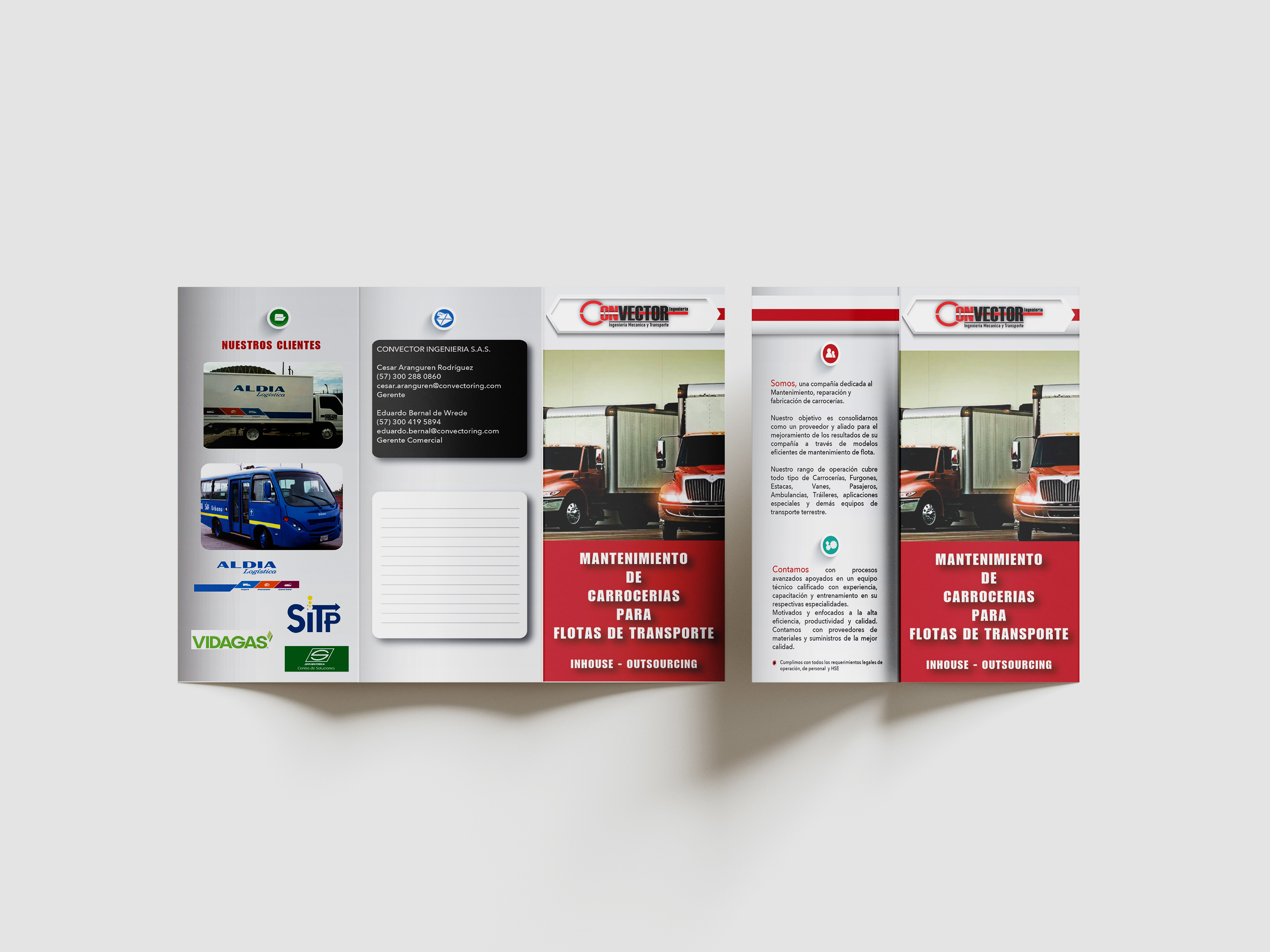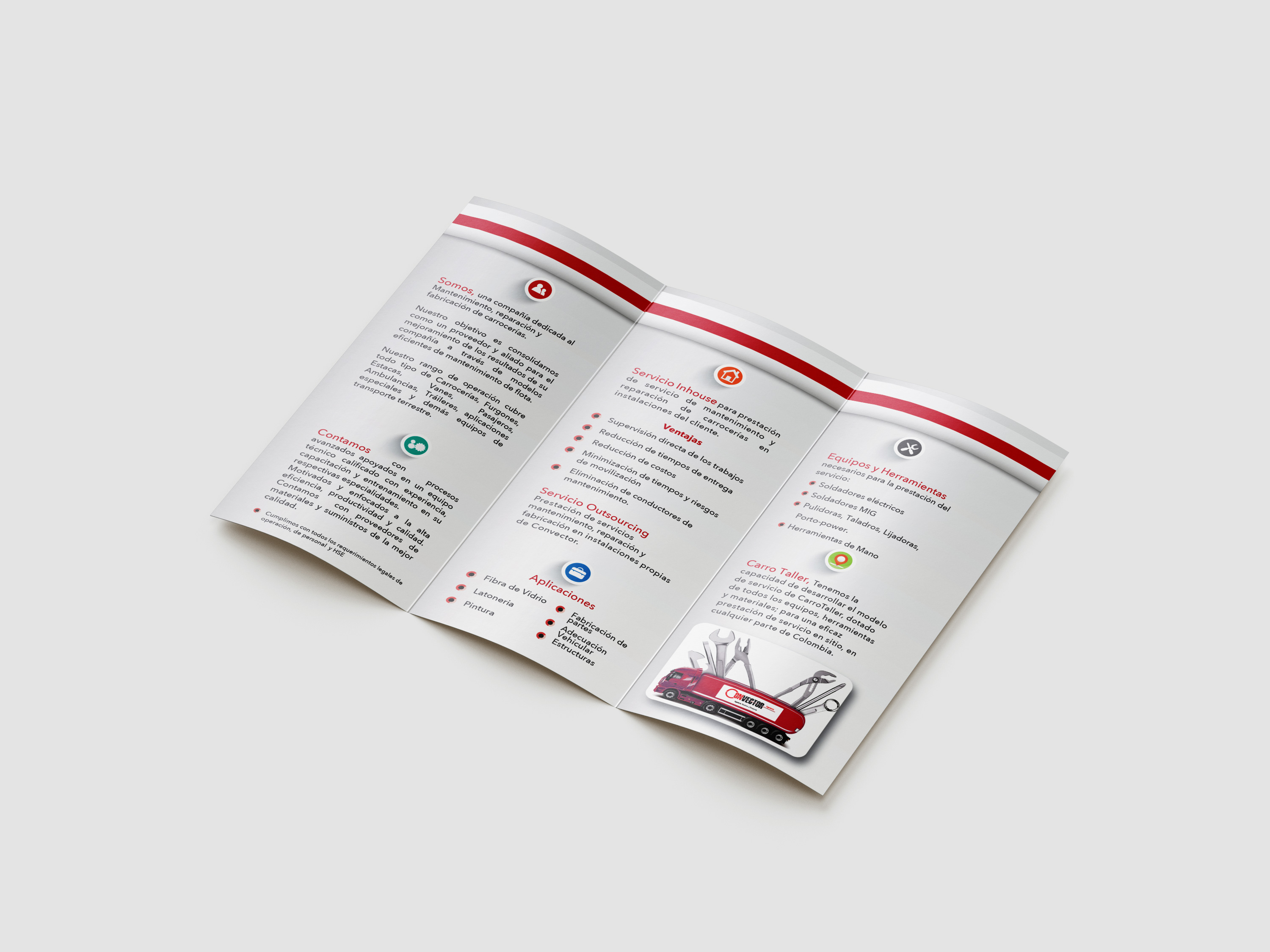 Convector Engineering is a company dedicated to the maintenance, repair, and manufacturing of bodywork for transport fleets. To consolidate its market position, a new logo, modern letterhead, and advertising materials were developed, as well as a new website.