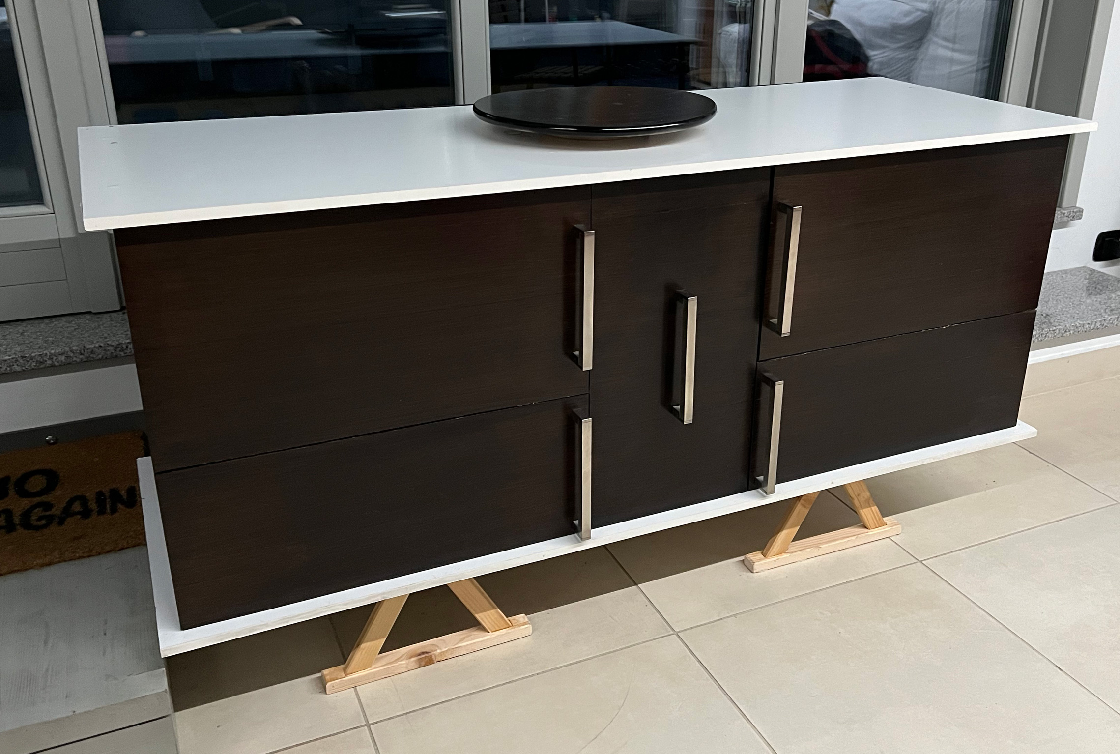 Modern Contrast: The white countertop and base trim contrast well with the dark wood body, offering a clean, minimal aesthetic.
