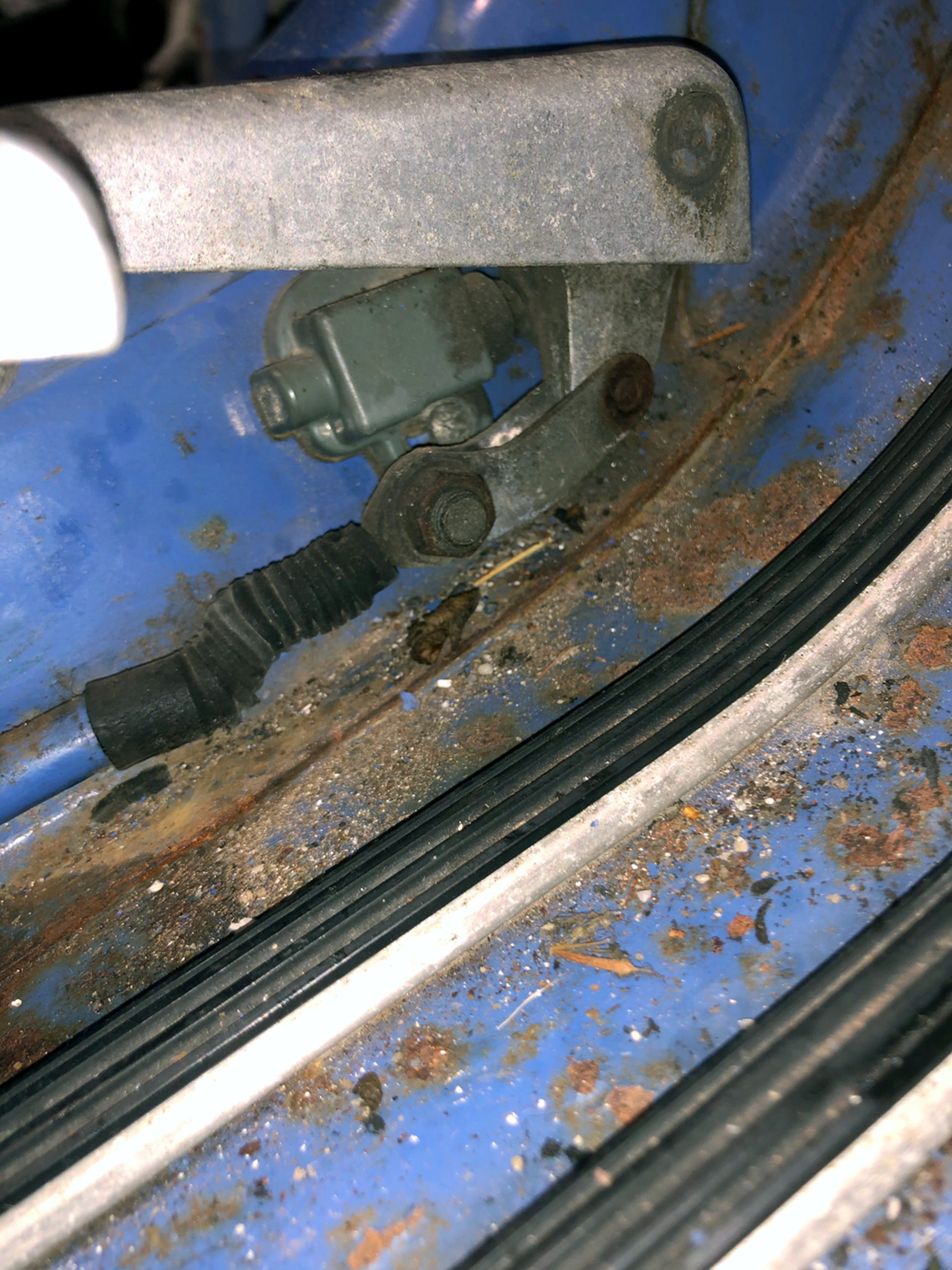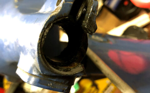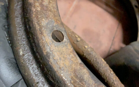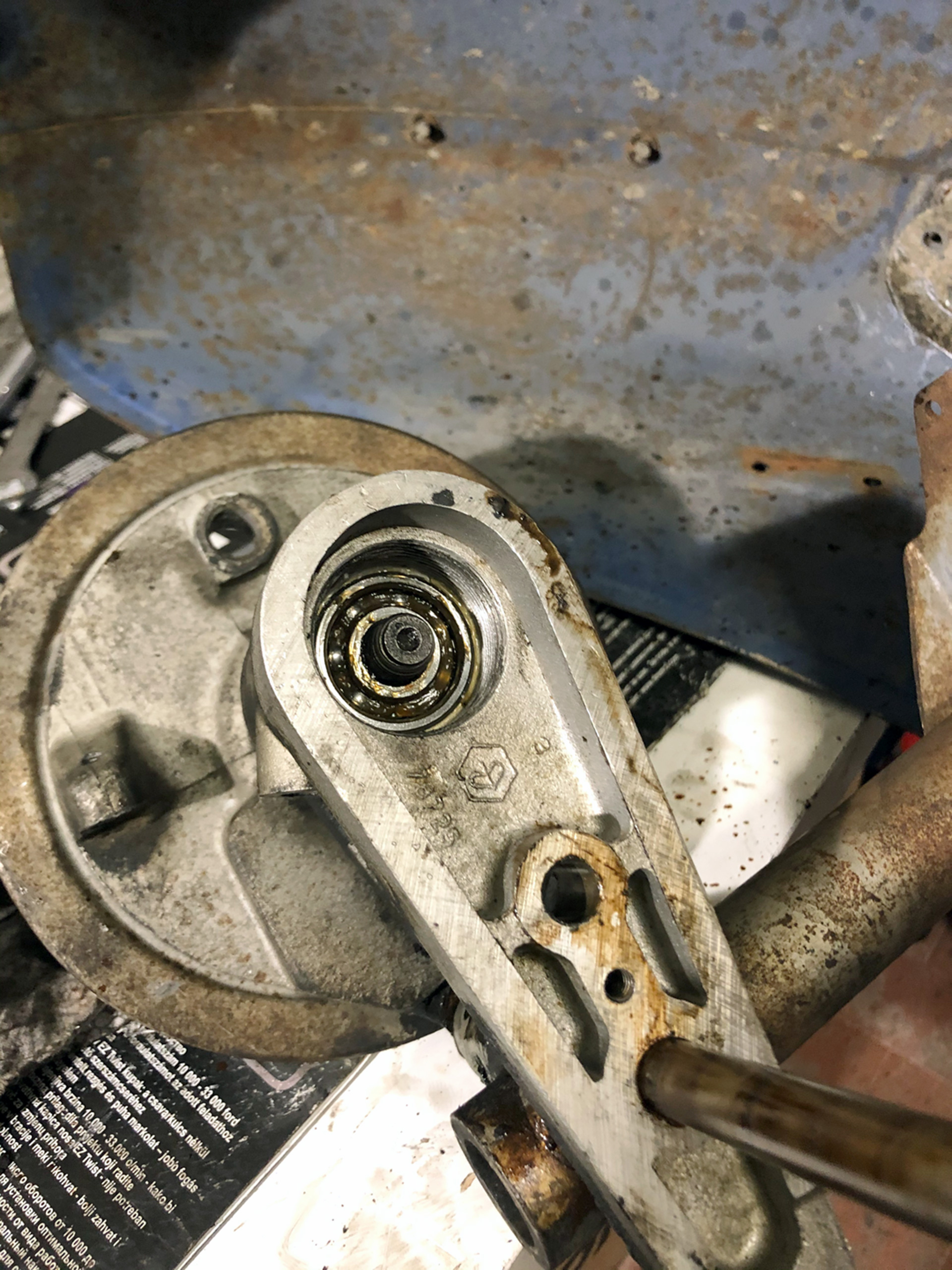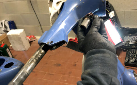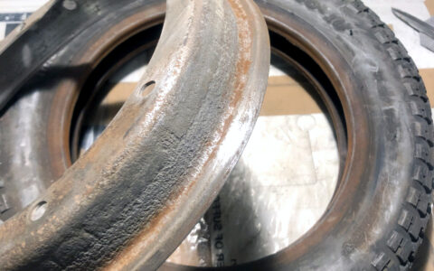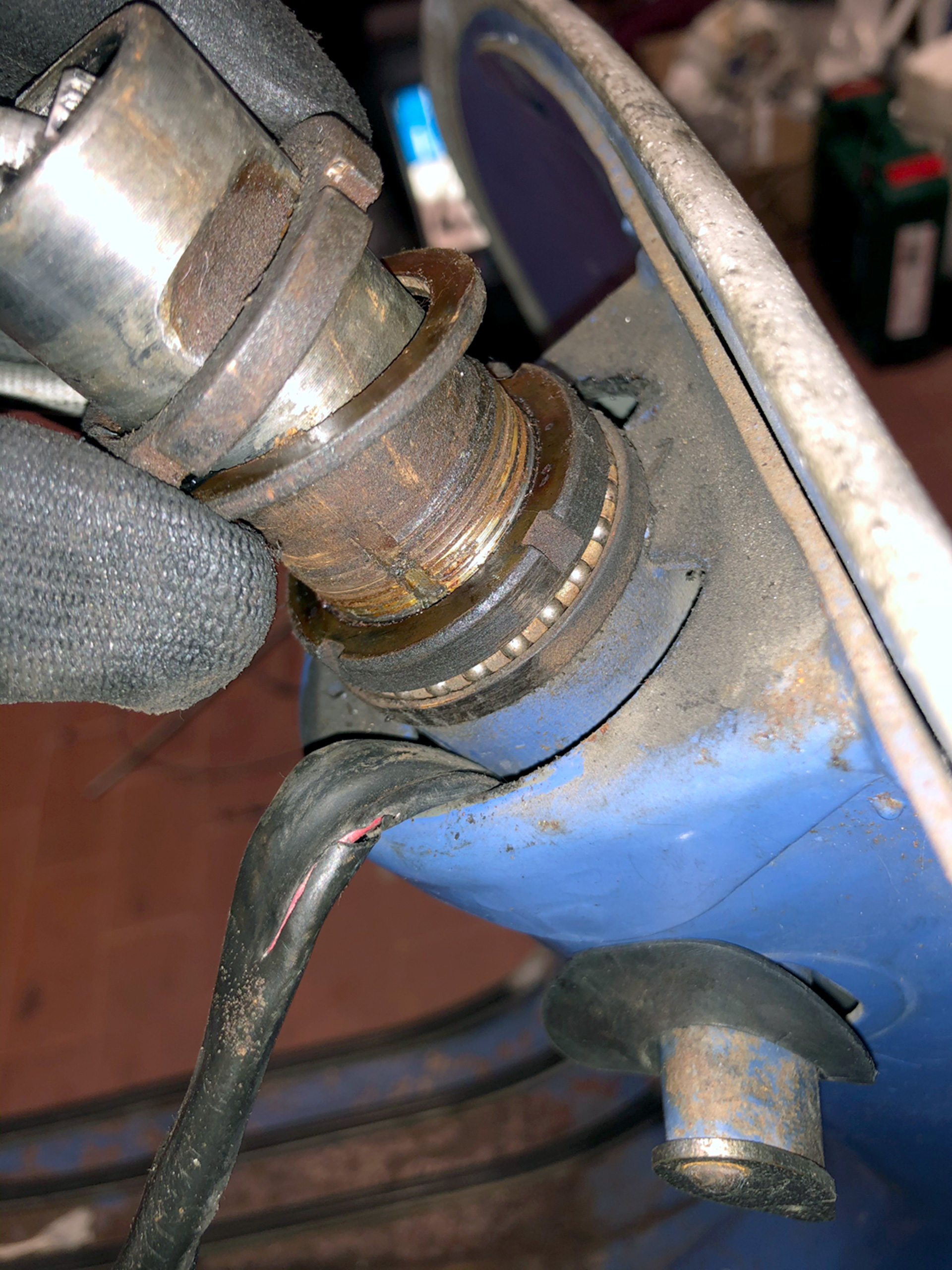 During that time, it developed several serious issues. Rust had compromised the body, engine, chrome accents, mechanical components, and wheels; in some areas, the metal had completely corroded away. The Vespa had also endured a couple of minor accidents, resulting in dented side covers and a twisted front body shield. All rubber components had become brittle and broken, the tail light was shattered, the seat was destroyed, and the steering mechanism was severely damaged, indicating that the bearings were no longer functional. Additionally, fuel had been left in the tank, leading to significant deterioration, and the engine had completely seized.