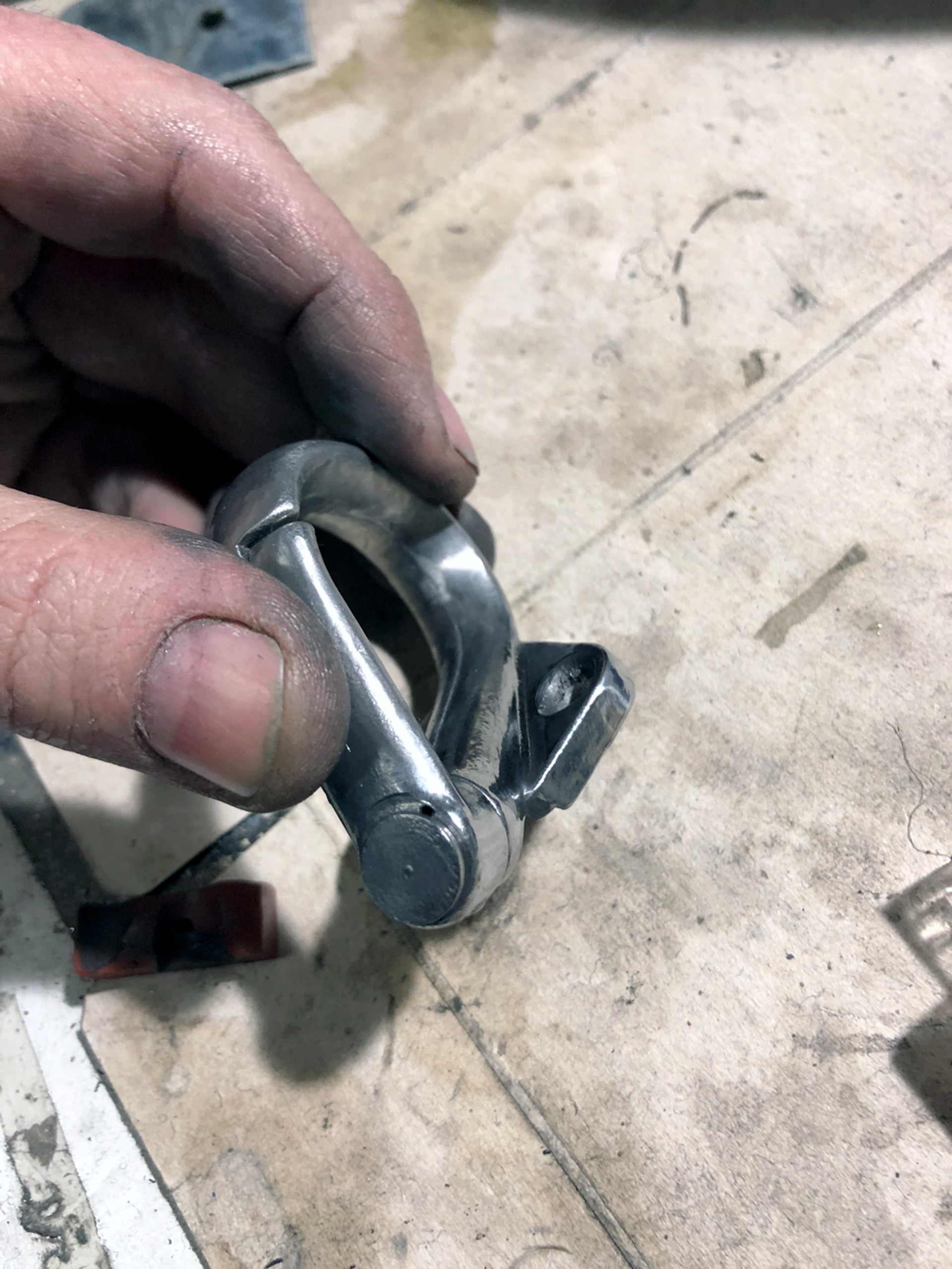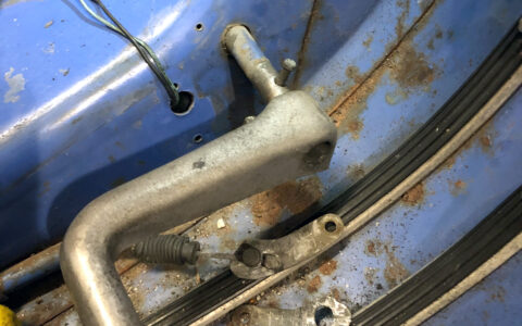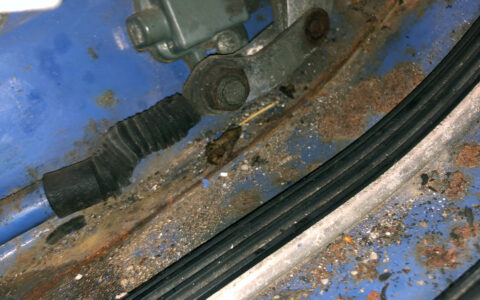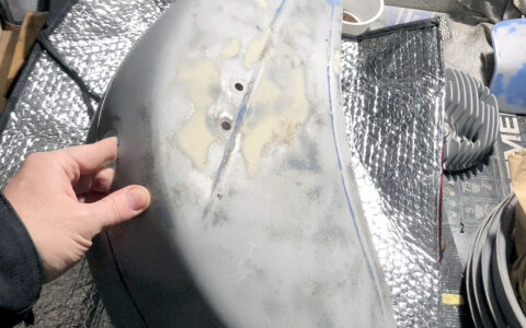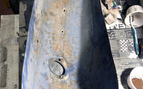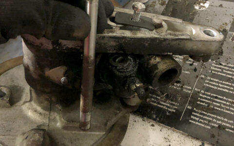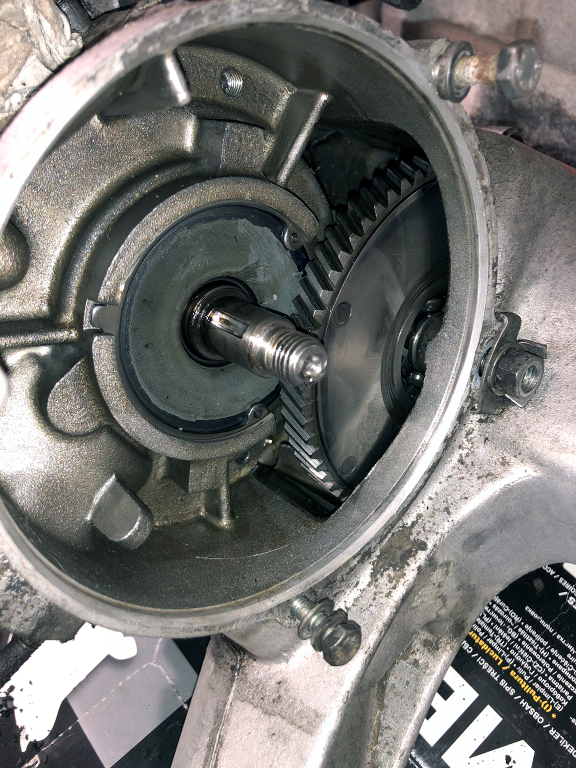 During that time, it developed several serious issues. Rust had compromised the body, engine, chrome accents, mechanical components, and wheels; in some areas, the metal had completely corroded away. The Vespa had also endured a couple of minor accidents, resulting in dented side covers and a twisted front body shield. All rubber components had become brittle and broken, the tail light was shattered, the seat was destroyed, and the steering mechanism was severely damaged, indicating that the bearings were no longer functional. Additionally, fuel had been left in the tank, leading to significant deterioration, and the engine had completely seized.