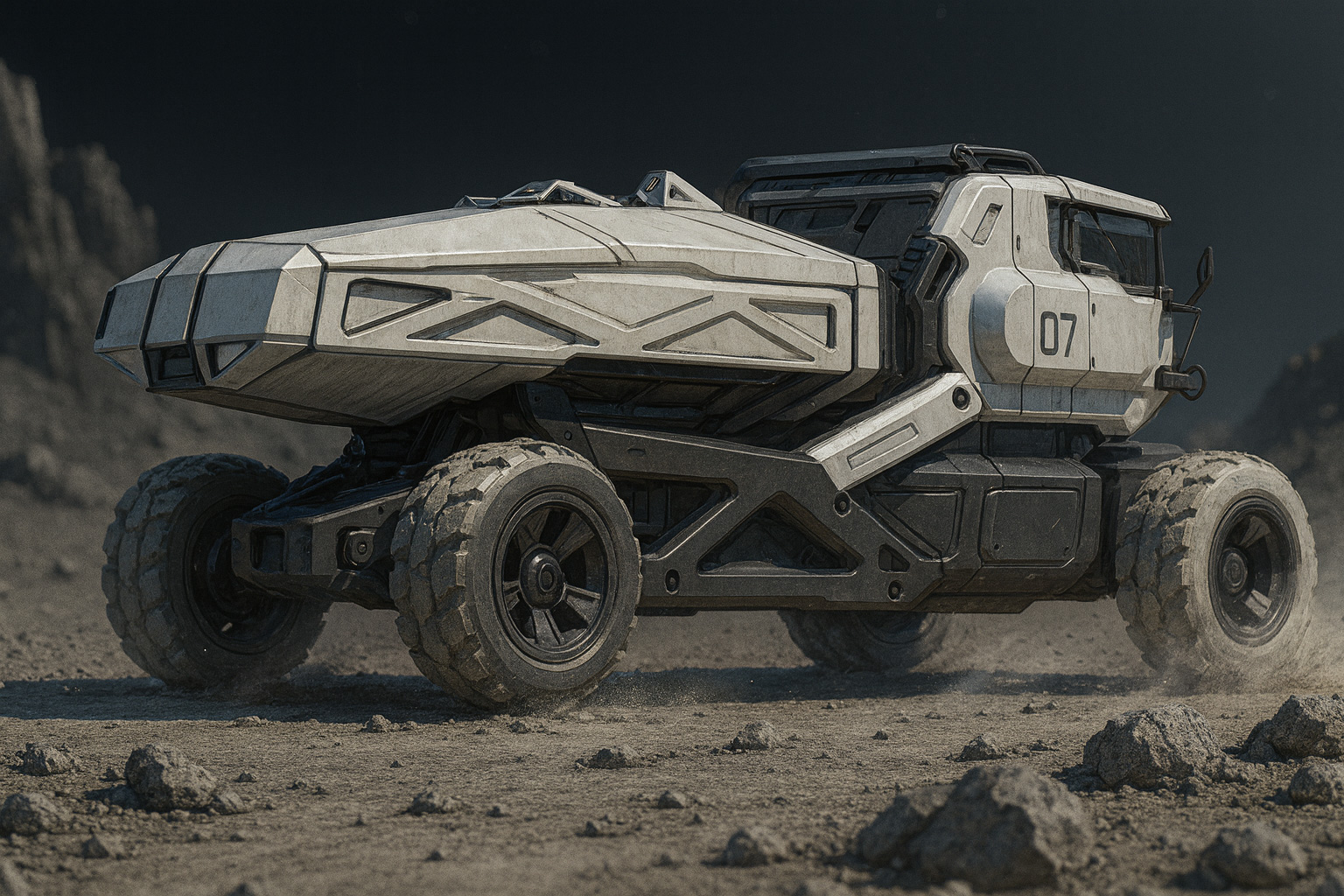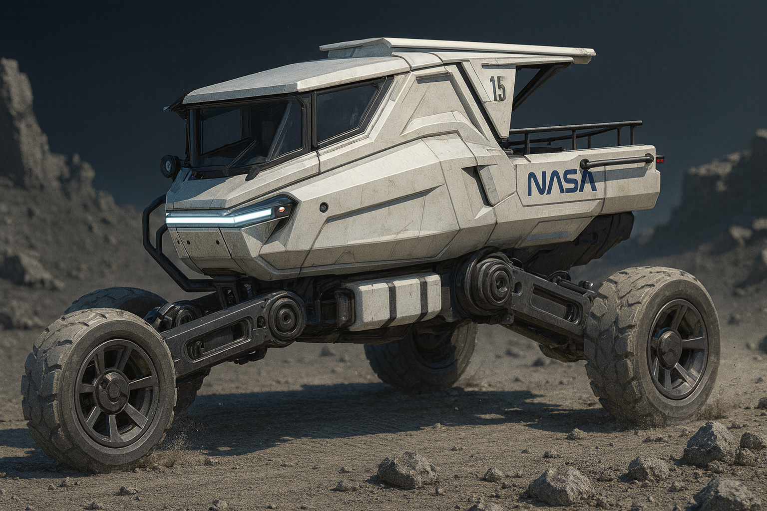 - Lunar logic cues: Non-pneumatic/large-void treads, generous chamfers to shed regolith, and simplified panel breaks for glove-friendly service.