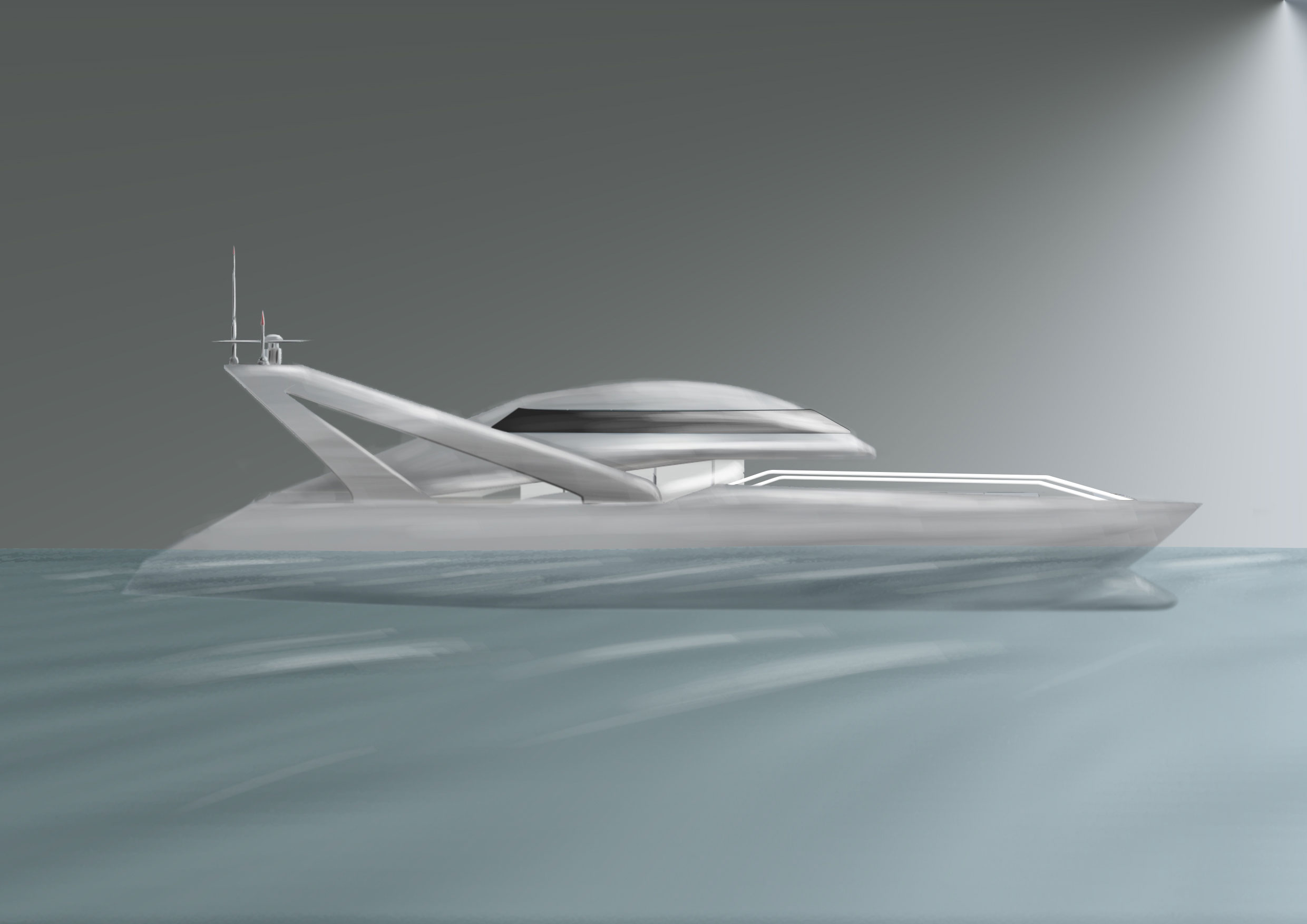 Elegant, avant-garde, and performance-oriented — a sculptural synthesis of art and hydrodynamics. It communicates futurism, craftsmanship, and precision engineering; a vessel that merges form and function into a singular, architectural gesture.