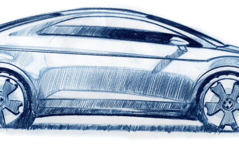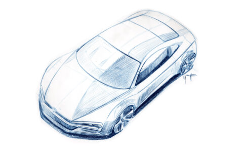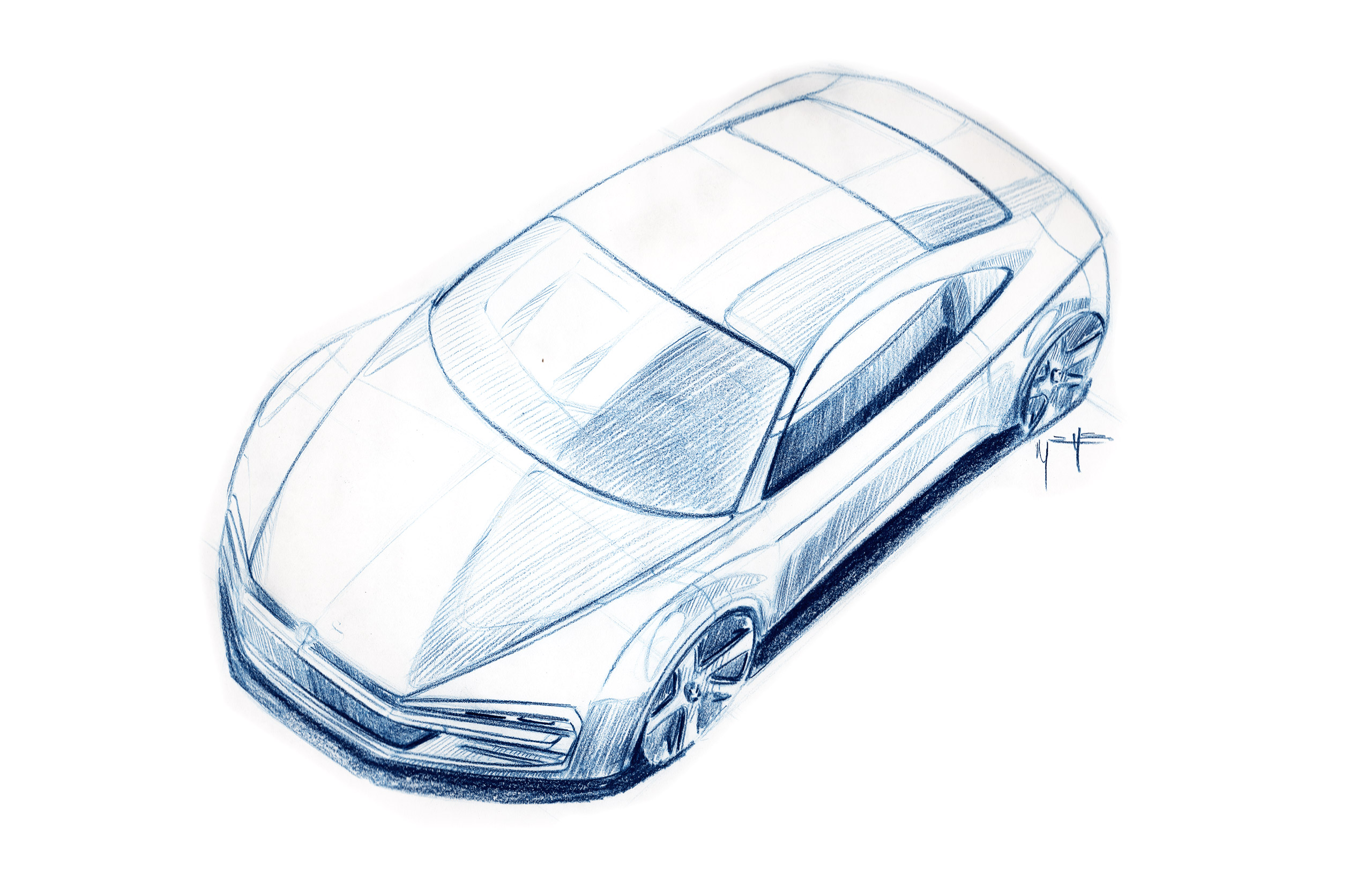 Continuous curvature from front to roof creates aerodynamic smoothness; fine creases articulate precision and balance.