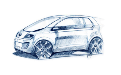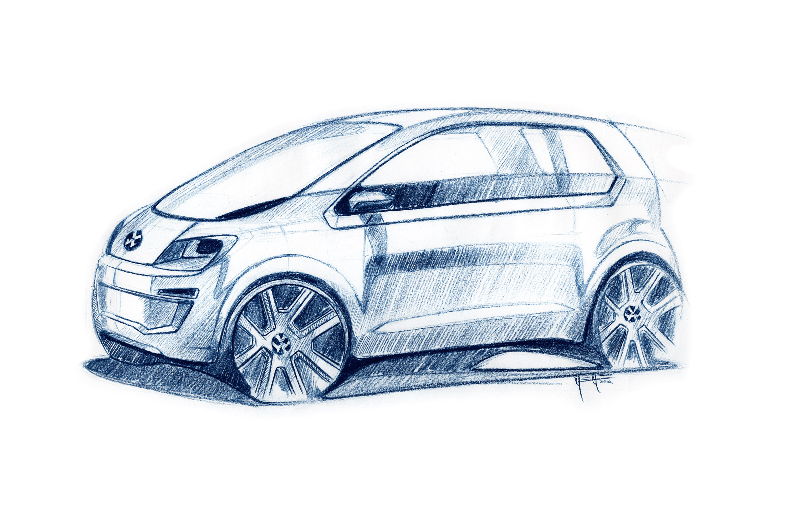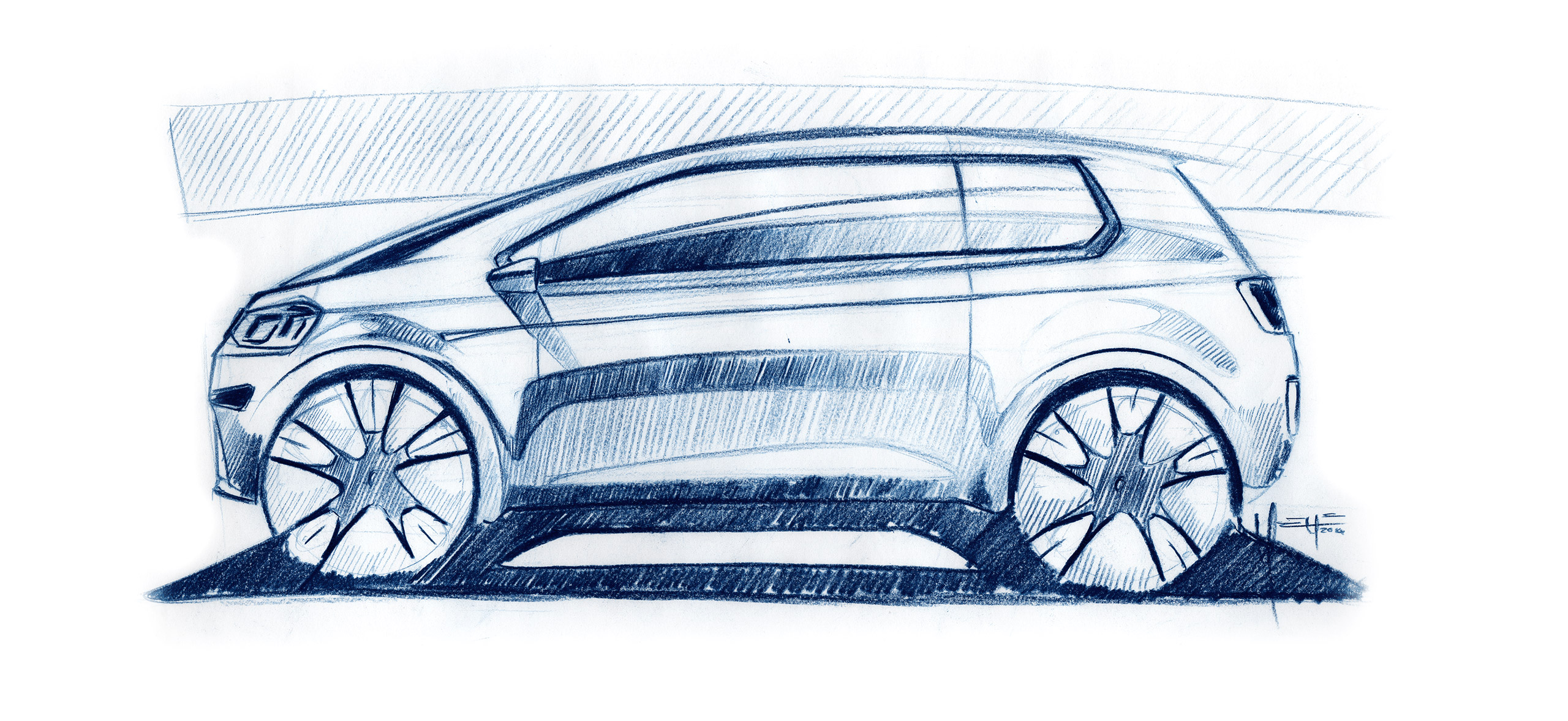 Proportion: Compact, upright monovolume with short overhangs and a wide stance for urban agility.